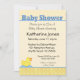 Baby shower canard en caoutchouc avec un mignon canard assis sur une vague bleue. Customisez avec les détails de votre fête en utilisant notre modèle facile.