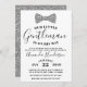 Cette Gentleman Baby shower Invitation dispose d'une cravate arc en Parties scintillant en argent Faux. Cet invitation est parfait pour n'importe quel petit homme, gentleman ou bow cravate baby shower, Le design élégant est parfait pour donner le ton pour une occasion de cravate noire.