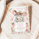 Ce design fantaisiste présente une douce illustration de fées forestières magiques, une jolie maison de champignons et d'élégantes fleurs d'aquarelle rose et rousse.