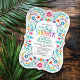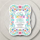 Mariachi, margaritas et souvenirs ! Lancez la fête avec ce design de fêtes folkloriques mexicaines. Le texte coloré et l'oeuvre d'art (dessinée à la main par Lively Scribe) donnent à ce design une ambiance fantaisiste mais élégante. Parfait pour les latins de votre vie. Ou une fête qui se trouve juste à côté du Cinco de Mayo ou de Dia de los Muertos. Commandez vos invitations imprimées et les fournitures de fête ou téléchargez vos invitations numériques dès maintenant pour une journée qu'ils n'oublieront jamais !