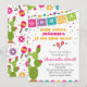 Célébrez votre petite señorita avec cette Invitation de Baby shower Fiesta colorée. Doté d'un cactus vert festif aux fleurs roses, d'une bannière picado au papel brillant, de maracas ludiques et de touches de confetti vibrantes, cet aménagement est parfait pour un baby shower mexicain à thème boho. Idéal pour les fêtes d'été. BBS203