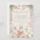 Joli Baby shower Bunny Script fille Invitation. Ce design de style vintage a un joli lapin qui pointe de derrière les fleurs et le feuillage. Vous pouvez facilement personnaliser tout le texte à vos propres besoins. Un arrière - plan de crème de coordination est à l'arrière.