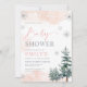 Invitation au baby shower de filles d'hiver avec des flocons de pins, et un design boho.