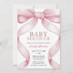 Fêtez l'arrivée de votre petite fille avec style avec notre Elegant "Pink Bow" Baby shower fille Invitation! Créez des moments inoubliables avec ce design adorable. Achetez dès aujourd'hui et faites de votre fête de Baby shower un moment inoubliable !
