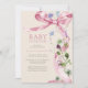 Elégant Bow Ribbon Fleur sauvage rose Baby shower Invitation Rose Floral Bow Fleur sauvage Baby shower Cette élégante invitation présente un bel arc rose, des fleurs sauvages délicats d'aquarelle et une typographie classique.