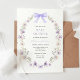 Baby shower invitation avec un cadre de fleurs sauvages aquarelle et un joli arc violet. Customisez avec vos informations pour que la mère soit. Cliquez sur "cliquer pour customiser plus loin" pour modifier le style, la taille ou la couleur de la police.
