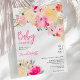 Baby shower fleuri chic boho rose printemps avec joli peint à la main aquarelle originale floral dans rose vif, jaune. feuilles et feuillage orangé et verdoyant. Un joli baby shower à thème fleuri parfait pour un brunch en plein air, une fête du jardin ou des fêtes du printemps
