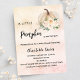 Arrière - plan rose doré et rose vif, décoré d'un citrouille crème et de fleurs, il est décoré d'un et d'une décoration . Personnalisez et ajoutez le nom et les détails du parti. Texte : Un petit Citrouille est en route.