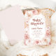 Baby shower Boho invitation en rose et or. Bel élégant design moderne avec des accents botaniques peints à la main. Caractéristiques roses d'aquarelle délicate, pivoines, gazon de pampas et police de typographie rétro. Vous pouvez choisir des invitations imprimées et/ou le modèle numérique de téléchargement instantané. Personnalisez avec vos propres détails. Idéal pour une célébration élégante de la douche bébé boho fille.