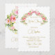 Baby shower Floral Crest Regency Bow Pink invitation. Baby shower élégant et chic dans les bleus et roses et fleurs colorées faisant une crête autour de l'information. Modifiez les informations de votre propre baby shower personnalisé.
