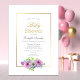 Une élégante invitation au baby shower floral rose et bleu bordée d'or.