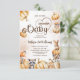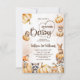 Bienvenue dans notre Baby shower d'automne! Notre invitation de style boho, mignon et rustique présente les plus jolies créatures forestières, dont un hibou, un hérisson, un renard, un loup, un lapin et un raton laveur, ainsi que de charmants citrouilles. Parfait pour une célébration sans distinction de genre.