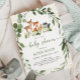 Cette invitation présente de mignons animaux boisés à la végétation fleurie et aux accents de feuille d'or.
