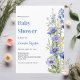 Un arrière - plan blanc chic. Décoré d'un fleur sauvage bleu, jaune. Personnalisez et ajoutez le nom de la mère à être et les détails de la fête.