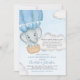 Ce baby shower fantaisiste sur invitation par la poste présente un adorable petit éléphant volant au milieu des nuages dans une montgolfière bleue sur un arrière - plan bleu aquarelle. Facile à personnaliser avec des options personnalisées en cliquant sur le bouton "Personnaliser".