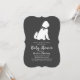 Inclure le grand frère ou la soeur bébé à fourrure dans la célébration avec cette adorable conception de baby shower de chien Goldendoodle! Parfait pour un amoureux du chiot avec un bébé en route. Le Golden doodle est à côté d'un adorable chariot vintage. L'arrière - plan gris damier est parfait pour une douche neutre ou co-ed pour les hommes !