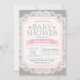 Aidons-nous à célébrer la belle maman à être avec cette adorable invitation de baby shower en dentelle et rose gris parfait pour accueillir une petite fille !