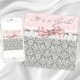 Joli ruban rose gris damassé rose oeillet blanc dentelle rose gris gris damassé rose baby shower fille fille invitation. Ajoutez vos détails à l'avant et à l'arrière en ajoutant les détails de l'événement, le style de police, la taille et la couleur de la police et le libellé.