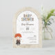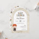Célébrez une nouvelle arrivée magique avec cette adorable invitation pour une baby shower sur le thème Harry Potter mettant en vedette Ron Weasley. Le design présente une illustration mignonne de Ron dans ses robes de Poudlard tenant sa baguette, entourée d'accents d'étoiles colorés. Le texte de l'invitation est disposé de manière artistique avec des polices ludiques et élégantes, personnalisables avec le nom de l'invité d'honneur, la date, l'heure, le lieu, les détails de RSVP et la liste de cadeaux. Une forme arquée unique lui donne une atmosphère de livre de contes, tandis que le dos affiche un motif charmant d'icônes du monde des sorciers, y compris des chaudrons, des potions, des livres de sorts et des créatures magiques. Parfaite pour tout fan d'Harry Potter, cette invitation plante le décor