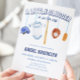 Petite Slugger Baseball Aquarelle Bébé Douche Invitations. Célébrez votre bonheur dans un baby shower sur le thème du baseball ! Ces belles invitations à l'aquarelle comprennent un baseball, un casque, un gant avec balle, et un hot-dog accroché à un bébé mobile. parfait pour l'arrivée prochaine de tous les fans de sport. Le revers de la carte montre un charmant motif rayé en bleu.
