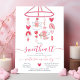 Invitations modernes et mignonnes Valentines Day Baby Shower. Dispose d'un chéri anges, des coeurs de bonbons, des pompons, des arcs-en-ciel et des étoiles accrochés sur un mobile de style boho. Parfait pour un baby shower près de Valentines Day ou toute autre journée avec beaucoup d'amour! Couleurs blanches, roses et rouges.