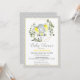 Aquarelle en jaune et gris entourée d'un prisme géométrique à l'aspect doré avec feuillage d'eucalyptus au-dessus de pois gris arrière - plan baby shower de conception de carte d'invitation.