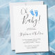 Envoyez ces invitations simples et élégantes à la douche bébé à la famille et aux amis. Elles sont décorées avec une typographie moderne et les pieds de bébé d'aquarelle peints à la main dans le bleu pastel. Parce que nous créons notre propre oeuvre, vous ne trouverez pas cette image exacte d'autres designers. Customisez ces invitations avec votre nom et vos coordonnées. Aquarelle originale © Michele Davies.