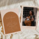 Cette invitation baby shower présente un mélange bohème d'orange brûlé et de beige crème, une arche simple et un design moderne minimaliste. Cet invitation baby shower est l'ajout parfait à votre baby shower désert neutre genre boho ou tout autre événement spécial. Tous les libellés et les couleurs sont modifiables. Ajoutez votre photo à l'arrière pour une touche personnelle.