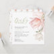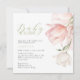 Une élégante invitation au baby shower présente un agencement de tulipes aquarelles dans les tons rose et blanc. Bébé en Fleur en écriture manuscrite. Personnalisez les détails clés tels que la mère pour être le nom, la date et l'heure de l'événement, l'emplacement, le RSVP et les informations de registre. L'envers est coordonné dans une conception motif tulipe