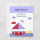 Une jolie scène sur le lac, un voilier rouge, blanc et bleu avec des petits canards jaunes dans l'eau et des oiseaux bleus dans le ciel. Customisez avec toutes les informations de votre baby shower selon vos besoins.