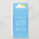 L'application de prévision météorologique a inspiré une invitation de baby shower neutre avec nuages et soleil sur arrière - plan bleu avec texte blanc personnalisé et icônes.