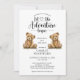 Laissez l'aventure commencer whimsical jumeaux invitation baby shower, avec illustration de nounours de bébé sans sexe. Typographie de script de calligraphie.