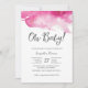 Invitation vos amis et votre famille pour célébrer votre baby shower avec cette invitation simple mais élégante de baby shower d'aquarelle rose. Le titre accrocheur "Oh bébé" et les éclaboussures d'aquarelle rose feront savoir à tout le monde que vous attendez une petite fille !