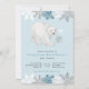 Jetez le plus beau baby shower à thème d'ours polaire d'hiver jamais avec cette adorable invitation personnalisée de baby shower. Ces invitations personnalisées pour bébé douche sont entièrement personnalisables! Vous pouvez modifier le texte en cliquant sur "personnaliser ce modèle". Cet invitation de baby shower d'ours polaire présente une élégante bordure de flocon de parties scintillant bleue, blanche et argentée ainsi qu'une illustration originale d'ours polaire par OhMyStarling. La carte de baby shower d'hiver a un arrière - plan bleu glacé qui est idéal pour une soirée baby shower à thème animal arctique. L'arrière de ces invitations de baby showers fêtes ont un motif répétitif à flocon de neige bleu, blanc et argenté parties scintillant.