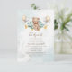 Créez simplement une invitation à baby shower à thème animal bois mignon avec ce modèle avec un ours mignon, ballons, bouts et succulent botanique à l'eucalyptus feuillus. CONSEIL : Consultez les autres articles de cette collection avec le même design pour une expérience d'achat complète et facile pour votre fête de baby shower.