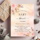 Pour un baby shower de style boho moderne. Un arrière - plan d'or rose, rustique et rustique à l'aspect rustique et rustique. Décoré de fleurs roses d'or et de rose, de roses, d'herbe de pampas. Personnalisez et ajoutez un nom et des détails du parti.