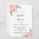 Pour un baby shower de style boho moderne. Un arrière - plan blanc à l'avant. Décoré de fleurs roses d'or et de rose, de roses, d'herbe de pampas. Personnalisez et ajoutez un nom et des détails du parti. Retour : arrière - plan rose d'or.