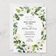 Longue distance Baby shower par mail invitation avec des branches de verdure aquarelle et des fleurs blanches qui balaient les coins du design. Personnalisez avec vos informations ou cliquez sur "Cliquez pour customiser plus loin" pour modifier les styles, la taille et les couleurs des polices.