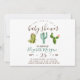 Jolies invitations à la douche bébé avec des cactus d'aquarelle au sommet avec des pois verts.
