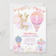 Hot Air Balloon Parties scintillant Girl Baby shower Invitation Le libellé de l'invitation peut être changé en n'importe quelle occasion.