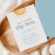 Cette invitation baby shower "Voici le fils" allie charme boho à une atmosphère rétro, ce qui en fait un choix idéal pour votre baby shower au thème du soleil avec des tons jaune et bleu. Célébrez dans le style et faites de votre journée spéciale mémorable avec cette délicieuse invitation.
