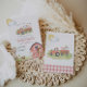 Adorable invitation de baby shower à thème de la ferme avec animaux de ferme, une grange et en vichy rose imprimé.
