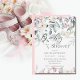 Jolie petite fille douce fleurs roses avec délicate invitation baby shower verdoyante. 100% de satisfaction client avec "Zazzle"