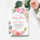 Invitation de baby shower personnalisable avec des illustrations d'aquarelle dessinées à la main de roses roses roses, souffle de bébé, feuilles et feuillage. Parfait pour C'est une fille baby showers et baby showers de printemps.