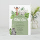 Cette invitation de baby shower safari sans sexe est parfaite pour une fête spéciale ! Doté d'un magnifique arc de verdure tropical avec une girafe, un éléphant et un zèbre, l'invitation fera plaisir à vos amis et à votre famille pour l'événement à venir.