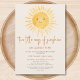 Prévoyez-vous un baby shower jumeau sur le thème du soleil ? Cette invitation au baby shower de soleil boho comporte le texte "Deux petits rayons de soleil sont presque ici!" avec une jolie aquarelle souriante soleil jaune sur un arrière - plan crème douce. Parfait pour les jumeaux, les filles ou l'un de chaque baby shower. Facile à personnaliser. Aquarelle originale © Michele Davies.