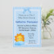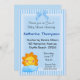 Soleil souriant sur un arrière - plan à bande bleue avec un arc bleu. Le design est parfait pour les invitations de douches pour bébé garçon. Customisez avec les détails de votre fête.
