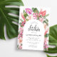 Éloignez-vous au paradis avec cette Invitation Baby shower Tropical. Cette belle invitation est remplie de touches élégantes et modernes, de fleurs romantiques et de couleurs vives. L'étonnante aquarelle comprend des feuilles de palmiers verts et de monstères, des orchidées magenta et fuchsia vives et des fleurs d'hibiscus roses. Trouvez les articles correspondants dans la collection florale tropicale colorée.