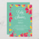 Une invitation à la fête à thème ludique et colorée à la tropicale, le luau hawaïen avec abstraite frontière florale. Idéal pour un baby shower de luau, ou toute autre occasion amusante.