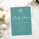 Cette invitation chic au baby shower turquoise présente votre minimaliste typographie blanche sous un doux jouet mobile pour un bébé garçon ou une fille. Des invitations élégants et neutres, à l'ombre de turquoise.